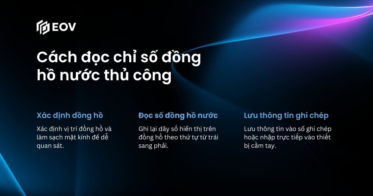 Để đọc đồng hồ nước thủ công, người ghi chỉ số sẽ thực hiện theo các bước cơ bản: