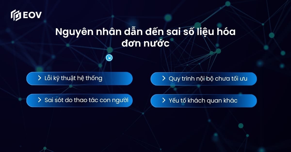 Sai sót cũng có thể đến từ bên ngoài như thay đồng hồ nước mới nhưng chưa cập nhật chỉ số ban đầu, sự cố điện, mạng khi phát hành hóa đơn điện tử hoặc lỗi truyền dữ liệu đến cơ quan thuế,...